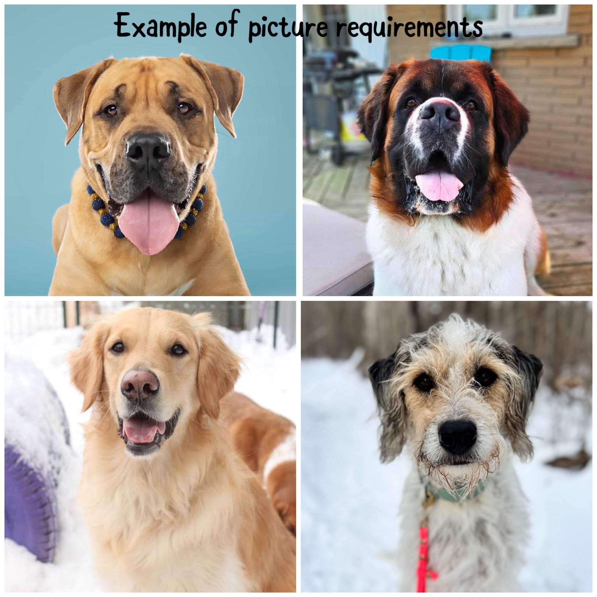 PICTURE: MUST BE A FRONT-FACING CLOSE UP OF YOUR DOG WITH MINIMAL BACKGROUND.